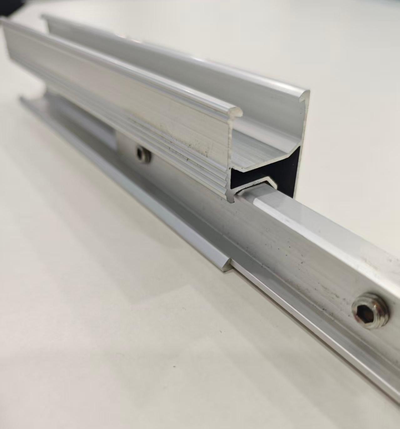 နေရောင်ခြည်စွမ်းအင်သုံးအလူမီနီယမ် R Rails 'တပ်ဆင်ခြင်းသည်အထူးသဖြင့်သံလမ်းနှစ်ခုကိုချိတ်ဆက်သောအခါအလွန်ရိုးရှင်းပါသည်။ connector ကိုဘေးဘက်ဖွင့်ပွဲထဲသို့ထည့်ပြီးသော့ခလောက်ကိုအောက်သို့တင်းကျပ်ပါ။ Connector ၏ထူးခြားသောဒီဇိုင်းသည်၎င်းကိုလုံလုံခြုံခြုံသော့ခတ်ထားသည်။ ထို့နောက်ဆက်သွယ်မှုကိုဖြည့်စွက်ရန်တူညီသောနည်းလမ်းကို အသုံးပြု. အခြားရထားကိုအသုံးပြုပါ